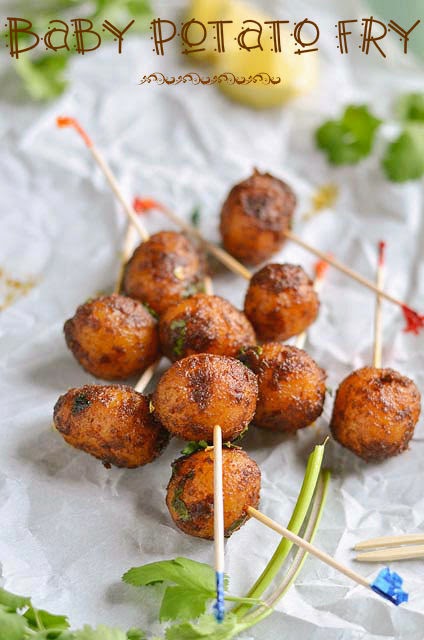 For this week of CCC I made the cute little baby potato fry,adapted from a T.V cookery show.Its a simple fry can be made in no time but the only thing it needs marination.If its marinated for a long time,the taste is more delicious and kept in the fridge for overnight.This potato fry can be served as an accompaniment or a party stater,lets move on to the recipe.....................